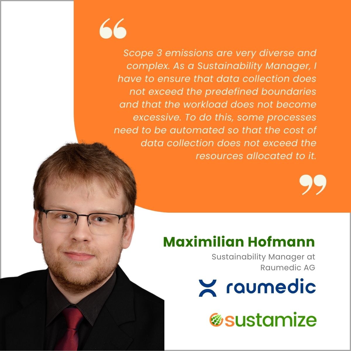 Scope 3 emissions are very diverse and complex. As a Sustainability Manager, I have to ensure that data collection does not exceed the predefined boundaries and that the workload does not become excessive. To do this, some processes need to be automated so that the cost of data collection does not exceed the resources allocated to it.